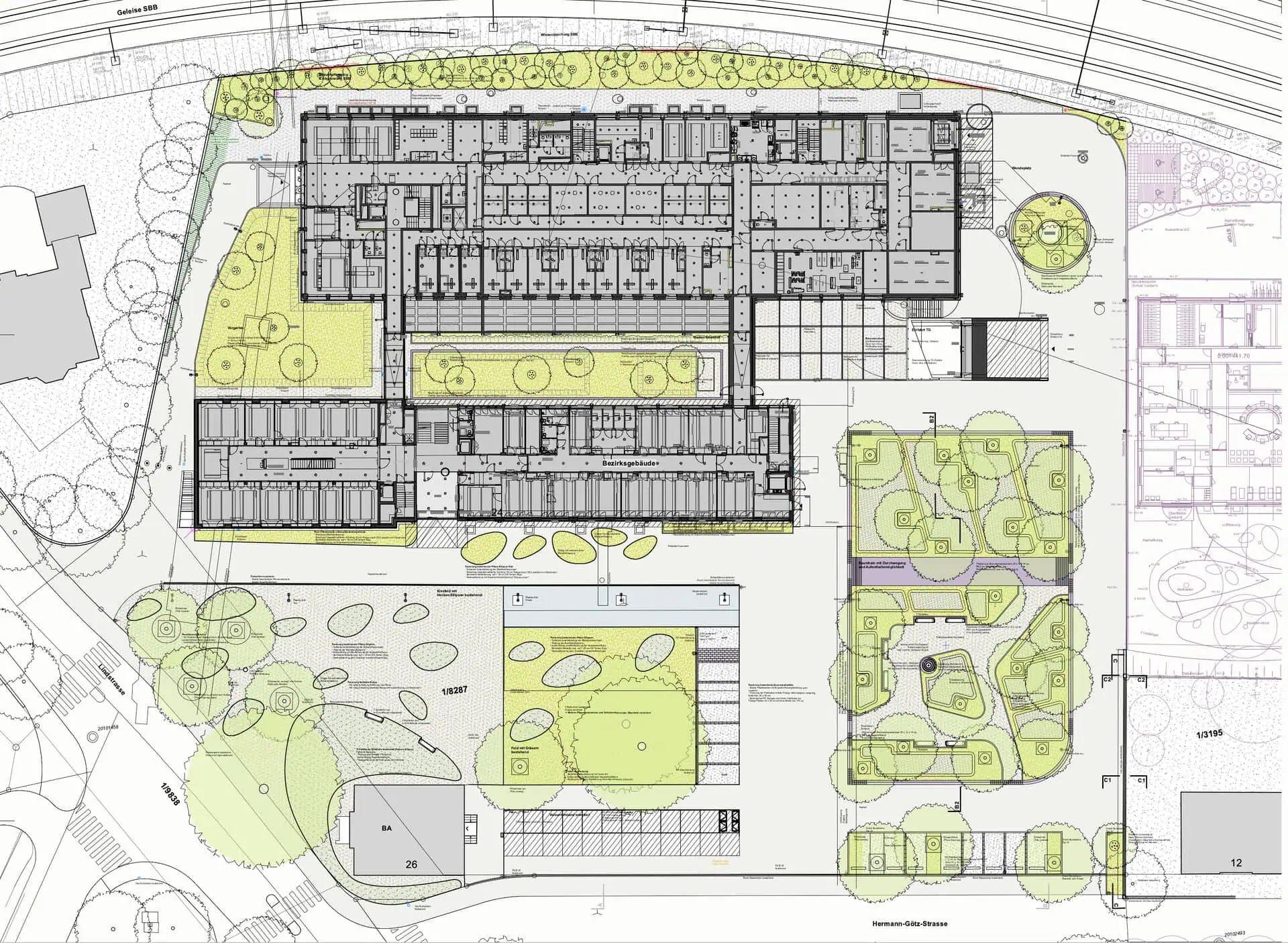 Bezirksanlage WinterthurErweiterung eines öffentlichen, repräsentativen Freiraumgefüges. Integration des Justiz- und Polizeigebäudes in den Stadtraum.Details