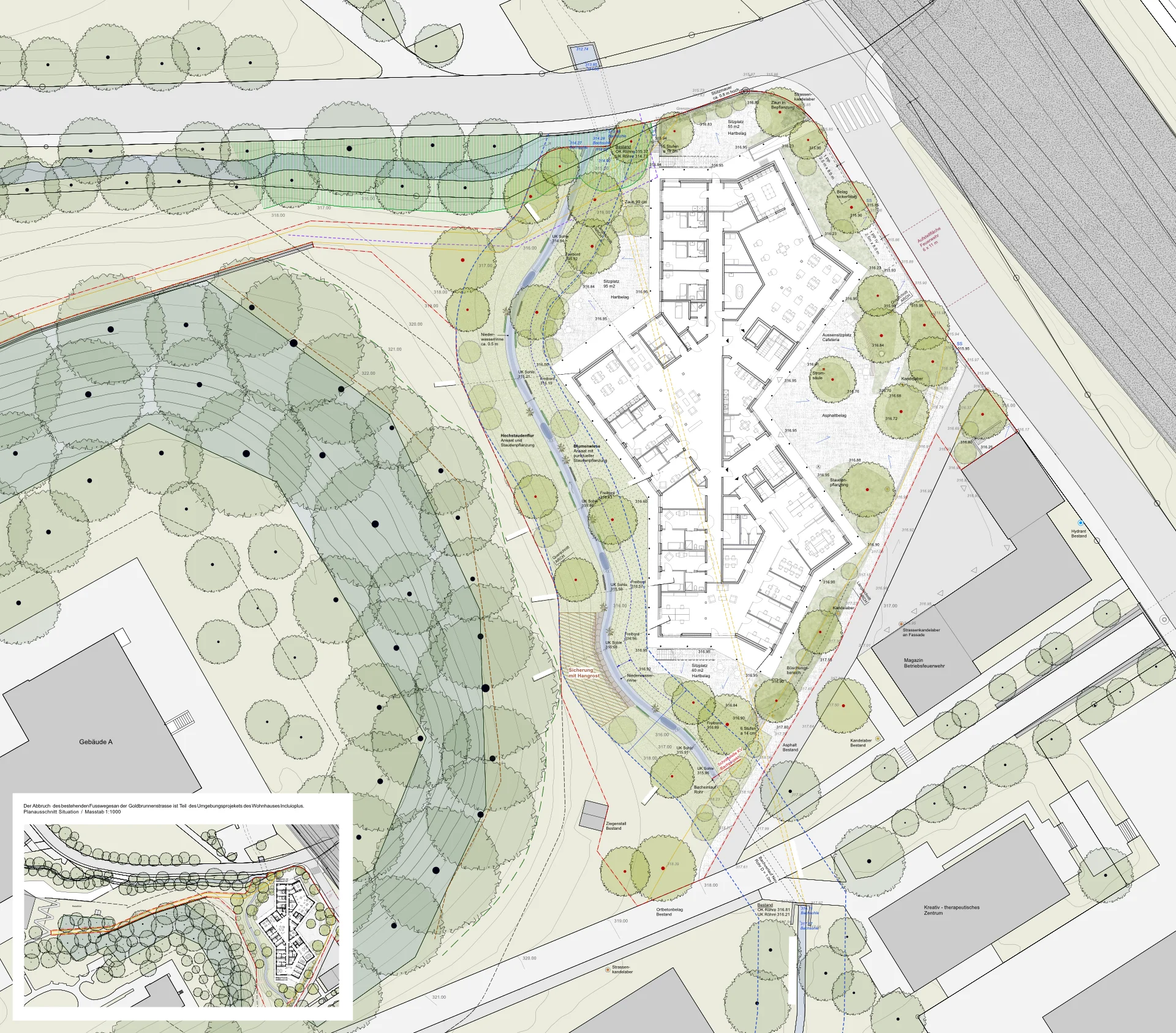 Wohnhaus inclusioplusUmgebungsgestaltung und Bachausdolung für ein neues Wohnhaus der Psychiatrie Baselland in LiestalDetails