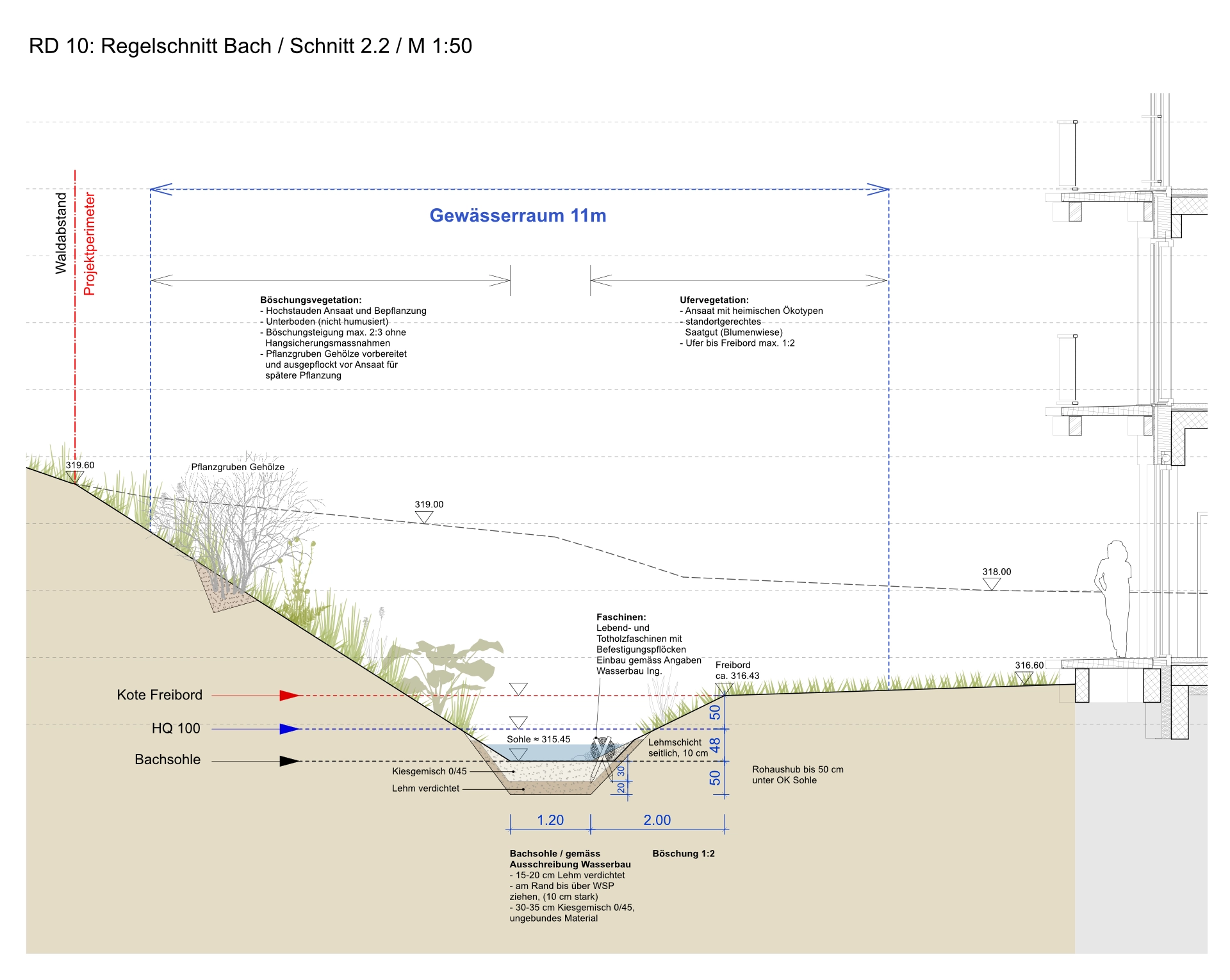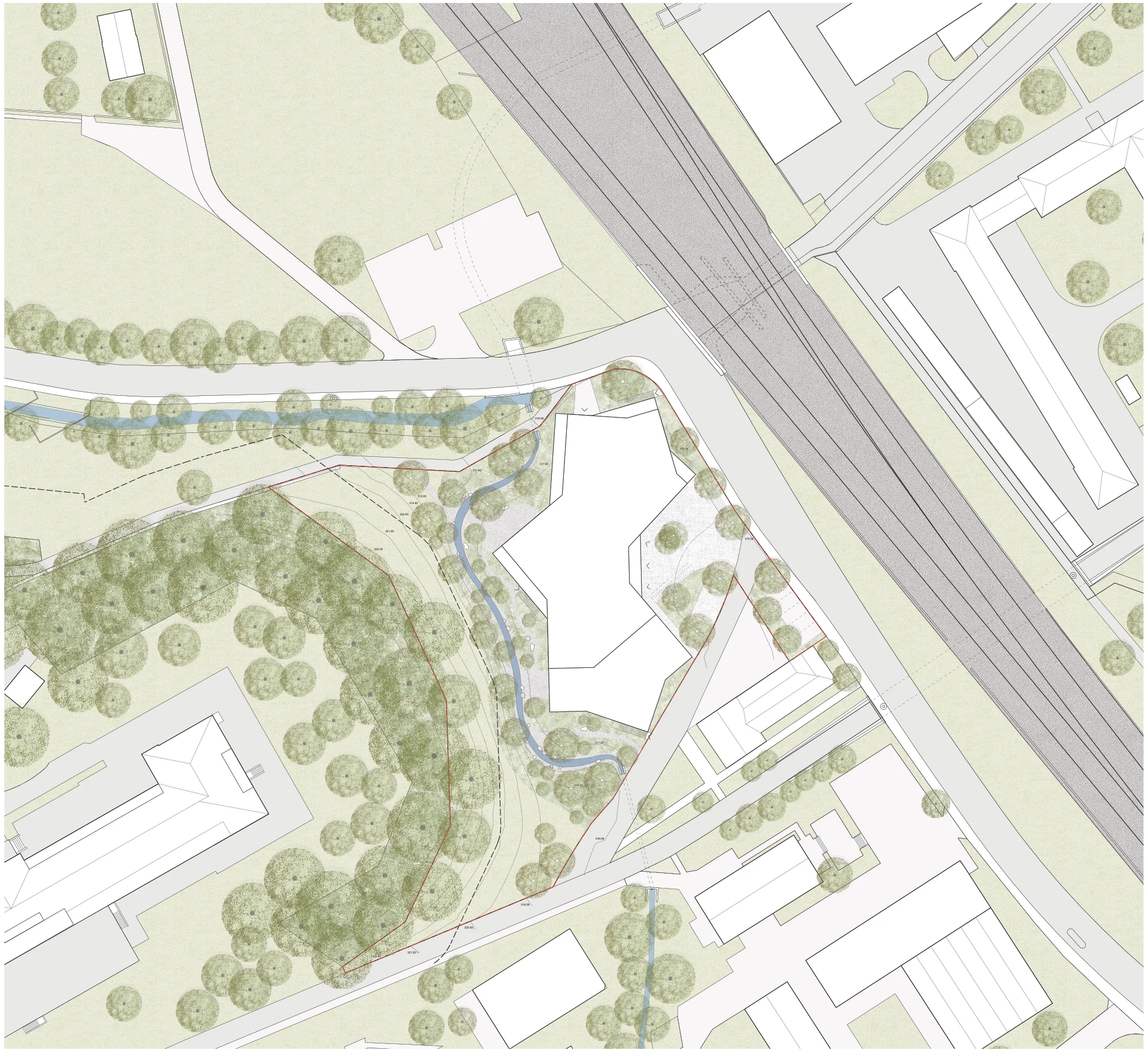 Umgebungsgestaltung und Bachausdolung für ein neues Wohnhaus der Psychiatrie Baselland in Liestal